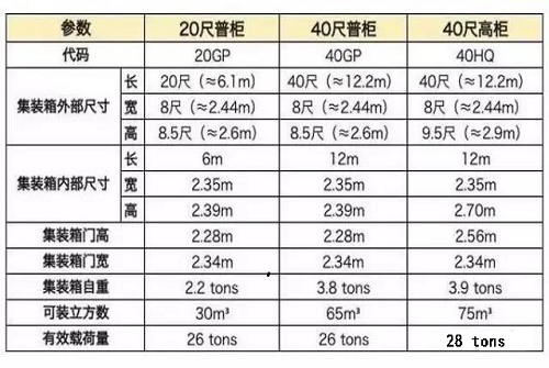 1.集装箱尺寸表: